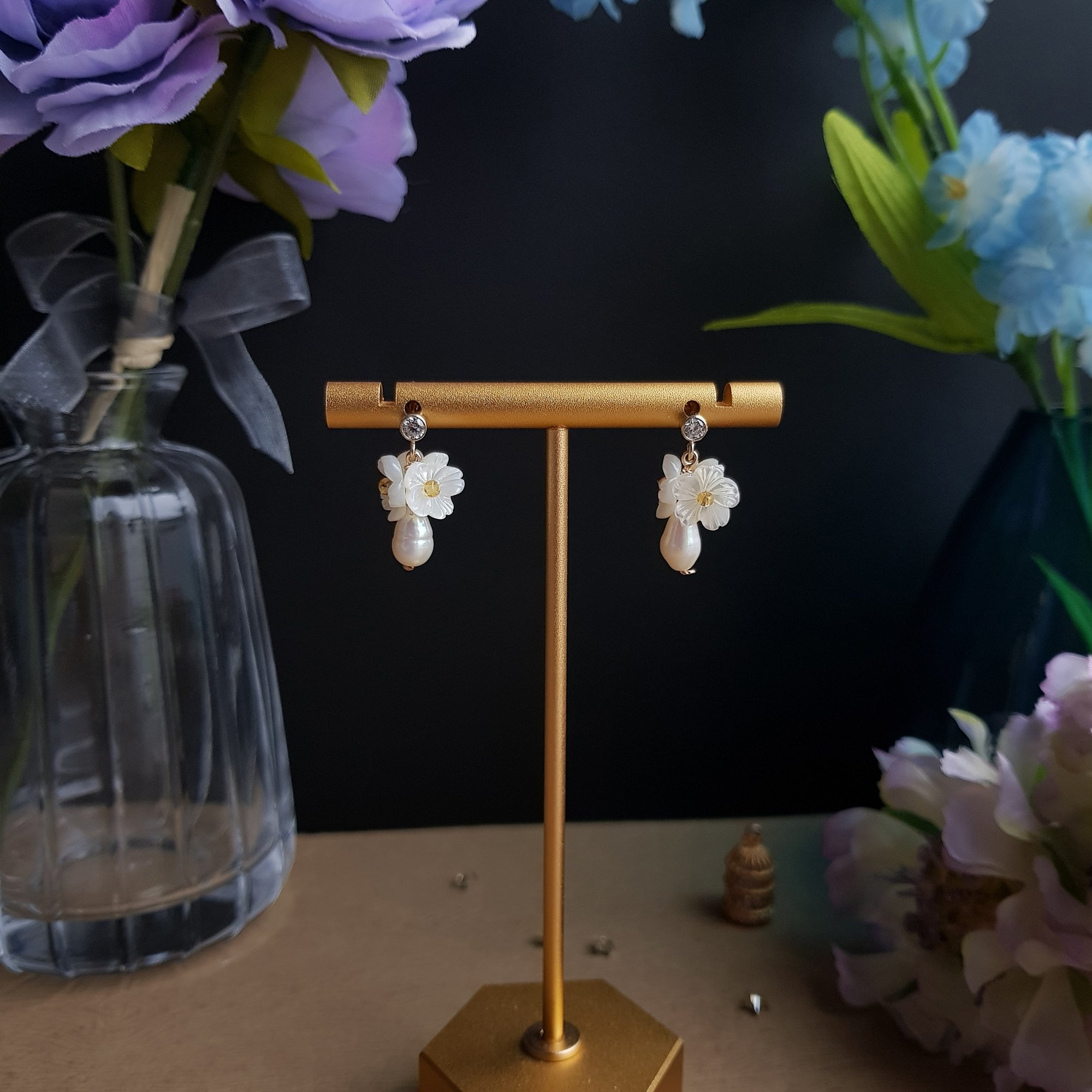 Tiny mother of pearl flowers in a cluster are hand strung by me. Depending on the popularity of this one, I might make more jewelry in this style.